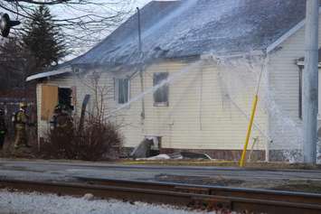 Windsor fire crews battle a blaze at 819 Wellington Ave., January 27, 2016. (Photo by Mike Vlasveld)