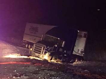 Chatham-Kent OPP say an eastbound transport truck jackknifed on the highway near Victoria Rd. Thursday night around 7:30pm.