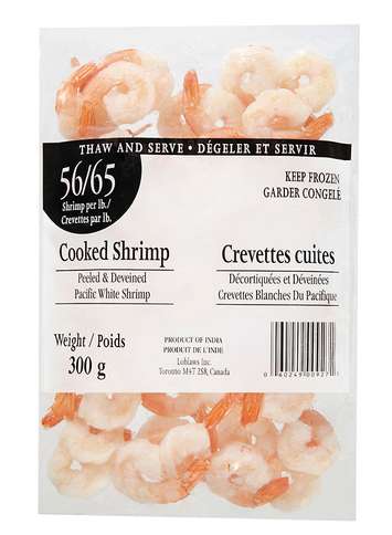 Only 300 g bags of 56-65 shrimp per lb are affected.