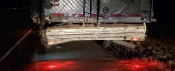 According to the Ontario Provincial Police, officers were called around 8:45 p.m. Friday for a complaint about a transport truck's rear bumper falling off and its rear doors being unsecured on Hwy. 401.