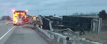 Police, fire crews and paramedics were called to the scene just east of the Queens Line interchange (exit 63) in Tilbury shortly after 7 a.m. Thursday after a single-vehicle collision involving a large truck. Local paramedics reported that one person was taken from the scene for assessment and treatment of minor injuries.