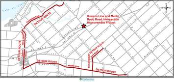 Phase 1 also requires a full closure of Merlin Road between Queen's Line and McDougall Line starting Monday, March 24, 2025, according to the municipality.