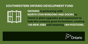 North Star Windows and Doors will get $1.2-million from the Southwestern Ontario Development Fund to go toward plant upgrades and expansions. A statement from the province says the grant will help North Star "upgrade and expand its plant to increase production to meet rising demand in existing markets and enter new markets."