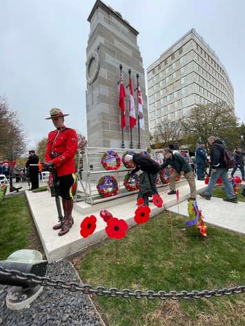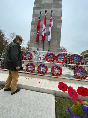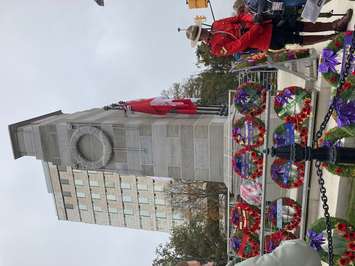 The Remembrance Day service included a performance by the Salvation Army Jubilee Brass, a land acknowledgement, the playing of Last Post, and two minutes of silence. The laying of the wreaths followed a reading of the poem In Flanders Fields.