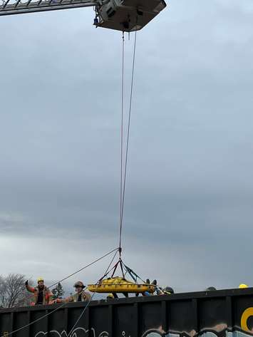 According to the fire department, crews responded to the railway tracks on Oxford Street, east of Clarke Road, just before 6 p.m. for a report of an individual stuck inside one of the train cars.