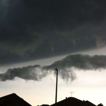The advisory warned of strong wind gusts getting as high as 90 kilometres per hour, nickel to toonie size hail and a risk of a tornado.