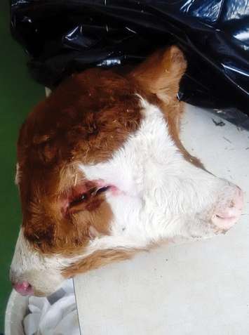 After the animal was euthanized, it was sent to the University of Guelph, and after a post mortem, it was determined that the rest of the animal seemed completely normal after the head. It had four legs, a tail, and two ears. However, the animal was born with four eyes, two noses, two esophagus and even two separate brains.