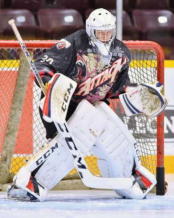 He's back between the pipes this Thursday when the Attack travel to face the Erie Otters.