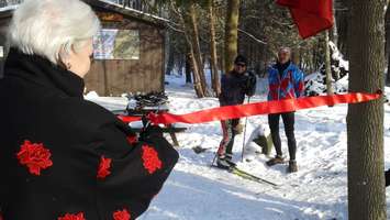 The Queen's Representative in Ontario was invited by the local ski club after a group of volunteers cut a new ski-and-snowshoe trail through a historic town property. The area's more than 7 km of trails wind through the woods along the lakeside property.