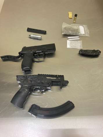 Officers allege the driver had a prohibited knife, and a 51-year-old Stratford man was arrested for Possession of a prohibited weapon. A further search of the vehicle turned up crystal meth, and hydromorphine, along with an altered .22 calibre ruger carbine rifle, a loaded bb gun, and a loaded .22 calibre magazine clip.