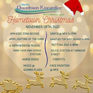 Ho! Ho! Hometown Christmas returns to downtown Kincardine Friday night. The event runs along Queen Street from Victoria Park to Quinn Plaza from 4:00-8:00pm.
