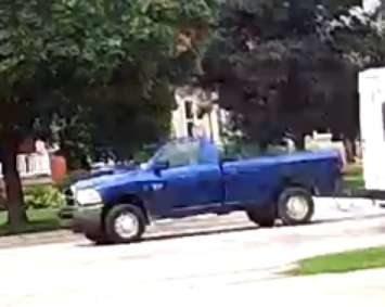 The wanted vehicle is a blue pick up that was towing a trailer at the time of the incident.