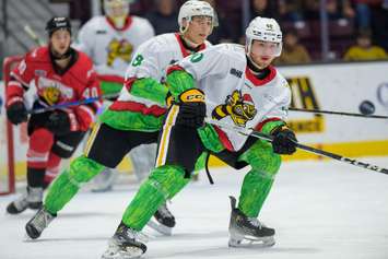Sarnia's Liam Beamish started the scoring seven minutes into the first period. Tyson Doucette quickly followed up with another goal a minute and a half later.