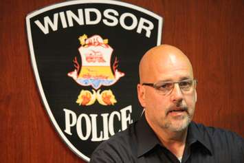 Public Information Officer Sgt. Matthew D'Asti arrives on scene to address the media about an apparent homicide in the 500 block of Brant St., June 4, 2015. (Photo by Jason Viau)