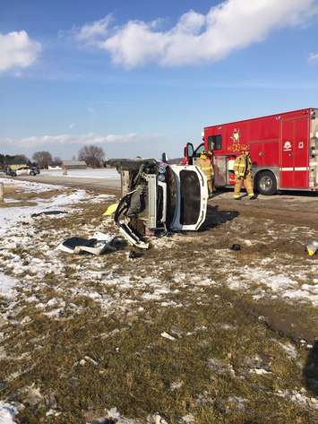 The Amherstburg Police Service says on Friday around 4pm, the vehicle was travelling on Concession 5 N. between N. Side Rd. and Middle Side Rd. when the driver swerved to miss an animal that had run on to the road. The driver lost control of the vehicle before it rolled and came to a rest on its side.