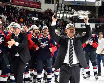 The Windsor Spitfires celebrate after winning the 2017 Memorial Cup. (Photo courtesy of Chris McLeod)