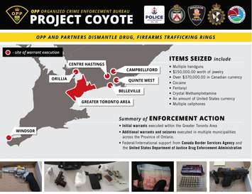 It involved the OPP Organized Crime Enforcement Bureau, Provincial Operations Intelligence Bureau, Toronto and Belleville Police Services, Canada Border Services Agency, and the U.S. Drug Enforcement Administration.