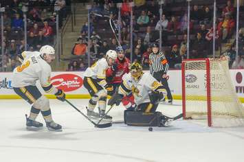 Sarnia's leading goal scorer Nolan Burke missed his fourth game due to an injury.