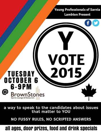 Sarnia-Lambton youth are the target of Tuesday night's local federal candidates debate at the Brownstones restaurant held by the Chamber of Commerce Young Professionals group. About 50 people are expected to mingle table-to-table with the local candidates, who will also take part in a "Heads Up!" game on Canada and politics. Spokesperson Natalie Normand says they wanted to offer a unique and relaxed way to interact with local candidates.