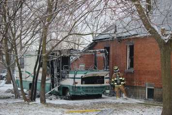 Platoon Chief Bill Sheane said the fire started in the RV and spread to the abandoned brick home just three feet away.