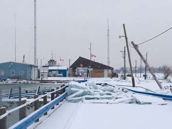 The raised road leading to the dock and Canada Customs office was washed away by St. Clair River ice earlier this month.