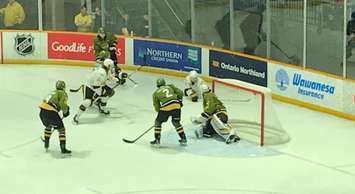 Former Sting goalie Cameron Lamour made 16 saves on 21 shots in the North Bay crease.