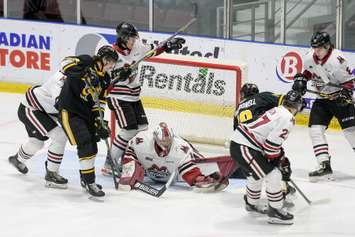 Nolan Burke scored a hat trick in the loss, Sandis Vilmanis added a goal and an assist, and Ty Voit, the OHL's leading scorer, had four assists.