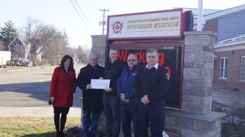Enbridge Gas presented a $5,000 donation at the Plympton-Wyoming Fire Department Wednesday morning through the Safe Community Project Assist, a program with the Fire Marshal’s Public Fire Safety Council.