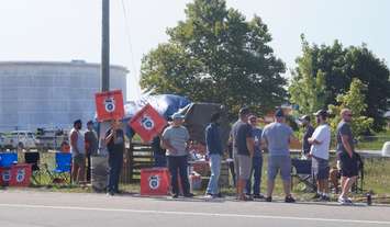 Teamsters union members picketing near Indian Road and Plank Road in Sarnia. August 22, 2024. (Photo by Natalia Vega)