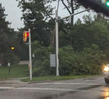 A line of thunderstorms moved through Sarnia-Lambton Tuesday evening, resulting in downed trees and power lines.