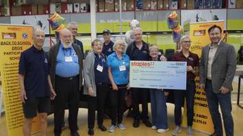 Kiwanis members and Staples Canada executives celebrated the amount raised at the Sarnia location on October 30.