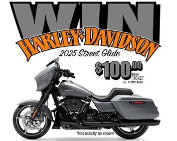 A 2025 Harley Davidson Street Glide motorcycle will be raffled off on Saturday, May 10 at the Corunna Legion, and there will also be a 50/50 draw.