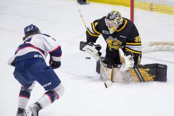 Beckham Edwards had the lone goal for Sarnia, his 13th of the season to tie it up at one apiece in the second period.