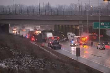 The westbound lanes of Hwy. 401 at Exit 7 were shut down for several hours while police investigated the crash. The highway was reopened around midnight.