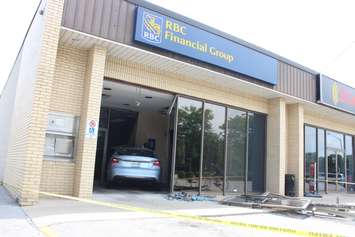 Three people were sent to hospital after a car smashes through the front of an RBC Bank on Huron Church Rd., July 3, 2015. (Photo by Jason Viau)