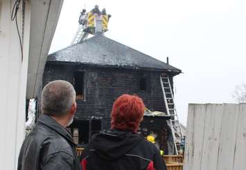 Homeowners look on as Windsor fire fighters battle blaze on Hickory St. in Windsor, March 23, 2016. (Photo by Maureen Revait)