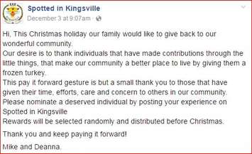 A Kingsville family is paying it forward this holiday season by honouring the unsung heroes who make the community a better place.