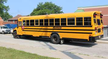 The bus, with 26 children on board, stuck another vehicle while making a right turn at the intersection of Tecumseh Rd. and Poisson St.