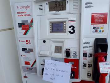 Gas bars including Esso, Canadian Tire and Pioneer ran out overnight and had notices posted on their pumps while they waited for new supplies to arrive by tanker later in the day.