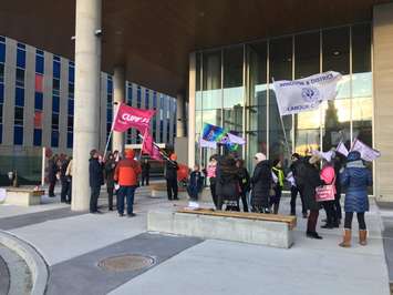 Public health nurses at the Windsor-Essex County Health Unit picketed at Windsor City Hall. Feb 25, 2018. (Photo by Paul Pedro)