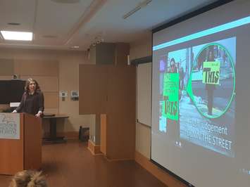 Laurie Eberhardt of 40 Days to Life addresses the Windsor Regional Hospital board of directors on December 12, 2019. Photo by Mark Brown/Blackburn News.