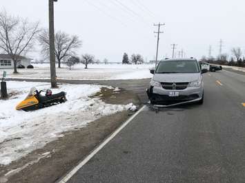 The Ontario Provincial Police said on Sunday around 2 p.m. a mini-van travelling on County Road 46 struck the snowmobile that was being driven by the 10-year-old as it crossed the roadway.