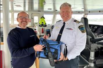 To mark the occasion, Harbour Master Peter Berry and officials from ADM Agri Industries greeted the master of the vessel with a Port of Windsor Challenge Coin.