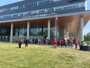 Around 100 landlords in Windsor gathered outside Windsor City Hall Monday evening to protest the Residential Rental Housing Licensing pilot program.