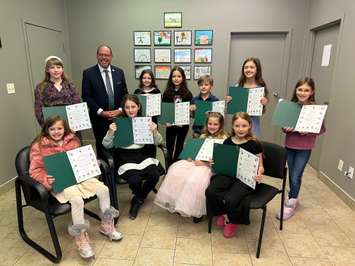 Ten of the 12 students whose art was chosen visited Lewis’ Constituency Office on Sunday where they were given a recognition certificate and parliamentary-themed gift.