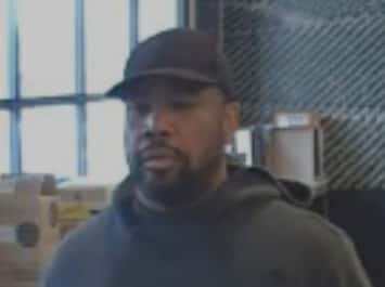 A security camera image of the second suspect is seen above. He is described as Black, with a medium build, 5’ 8” tall, and approximately 50 to 60 years of age.