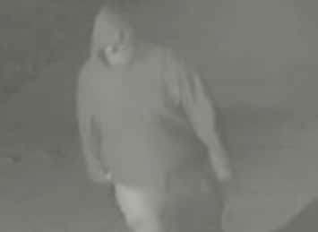 The suspect is described as a male with a heavy build. He was wearing a grey sweatshirt, light-coloured pants, and black shoes with white soles.