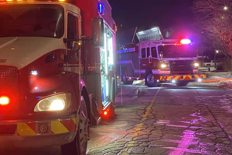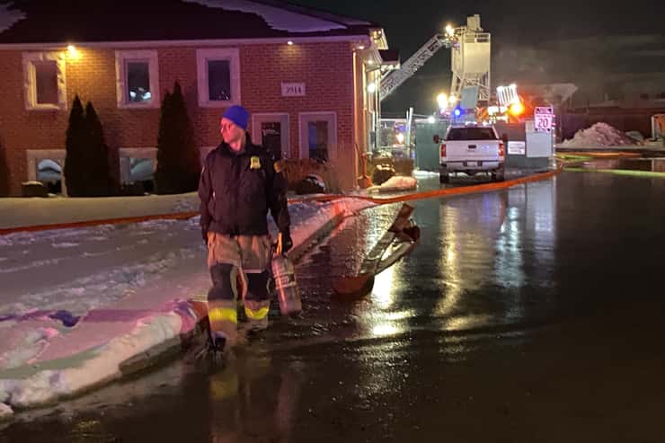 Windsor Fire and Rescue crews respond to a blaze at a concrete company on February 3. (Photo by Adelle Loiselle)