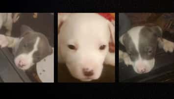The stolen puppies are Dogo Argentino and American Bully mixed-breeds.