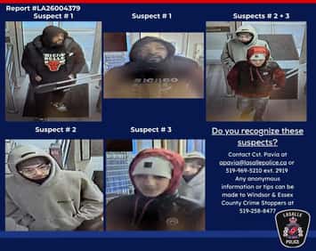 Anyone who may recognize them, or may have information about the incidents, should call LaSalle Police Constable Pavia at (519) 969-5210, extension 2919. Anonymous tips may be submitted to Crime Stoppers at (519) 258-TIPS (8477).